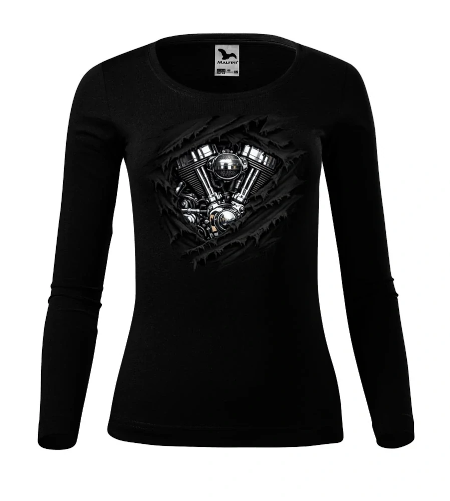 Toto tričko s dlhým rukávom a unikátnym motívom V-Twin motora „presvitajúceho“ spod kože je stvorené pre jazdkyne, ktoré majú techniku v krvi. Ide o štýlový kúsok od motozona.sk, ktorý kombinuje originálny dizajn s jemne vypasovaným strihom pre maximálny komfort a ženský vzhľad.