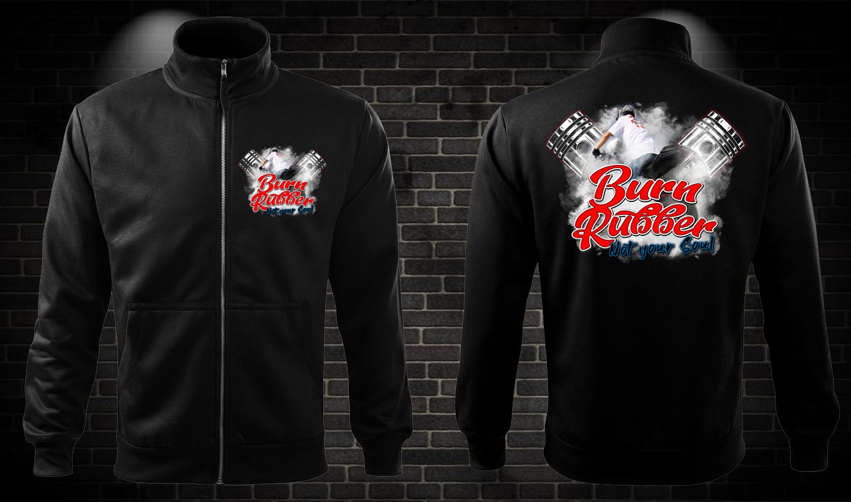 Motorkárska zipsová mikina Burn Rubber - not your Soul